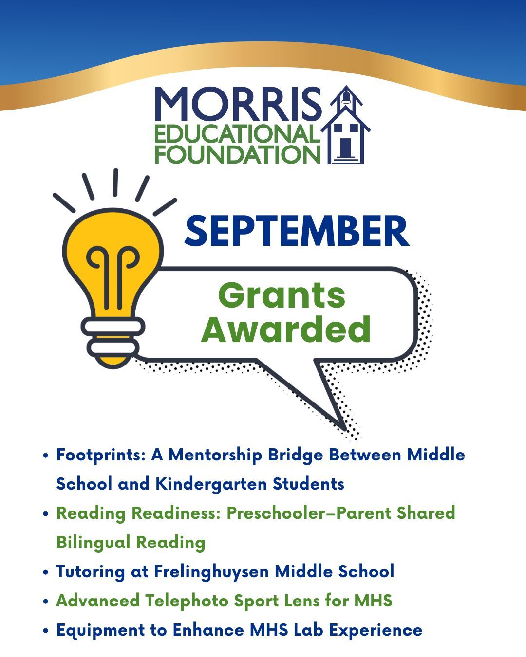 The Morris Educational Foundation is proud to announce it has awarded $124,225 in grants and programs to the Morris School District in the 2024-2025 school year. Twenty-five grants were awarded supporting the academic pursuits of all 5,700 students in all ten schools. Click to view the full list of grants awarded in the 2024-2025 school year.